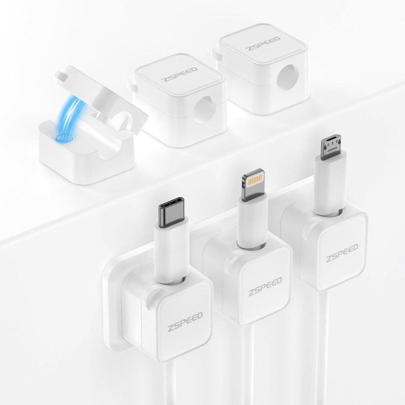 【6個セット マグネット式 】Zspeed ケーブルホルダー ケーブルクリップ 充電ケーブル/配線収納 強力粘着 デスク周り ガジェット コードクリップ コード 収納 ケーブル まとめる 卓上 デスク 🔧【競合にない貼り付けベース付き】独自の3-in-1マグネット粘着パッドを搭載。